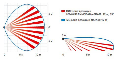 | Область детекции | 12 м, угол 85° (94 зоны детекции) | |||
